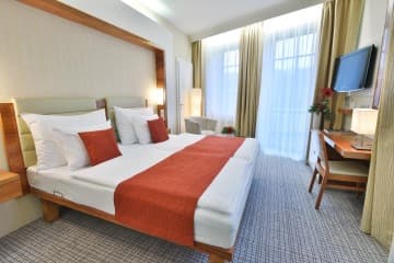 Classic-Zimmer sind Doppelzimmer mit höchstem Komfort. Mit King-Size- oder Twin-Bett ausgestattet. Classic-Zimmer bieten Designer-Interieurs und ein breites Spektrum an zusätzlichen Dienstleistungen der Kategorie First Class Superior. Mit Blick auf die ruhig gelegende Seite, einige auch mit Balkon. Sie befinden sich im Gebäude A und B.