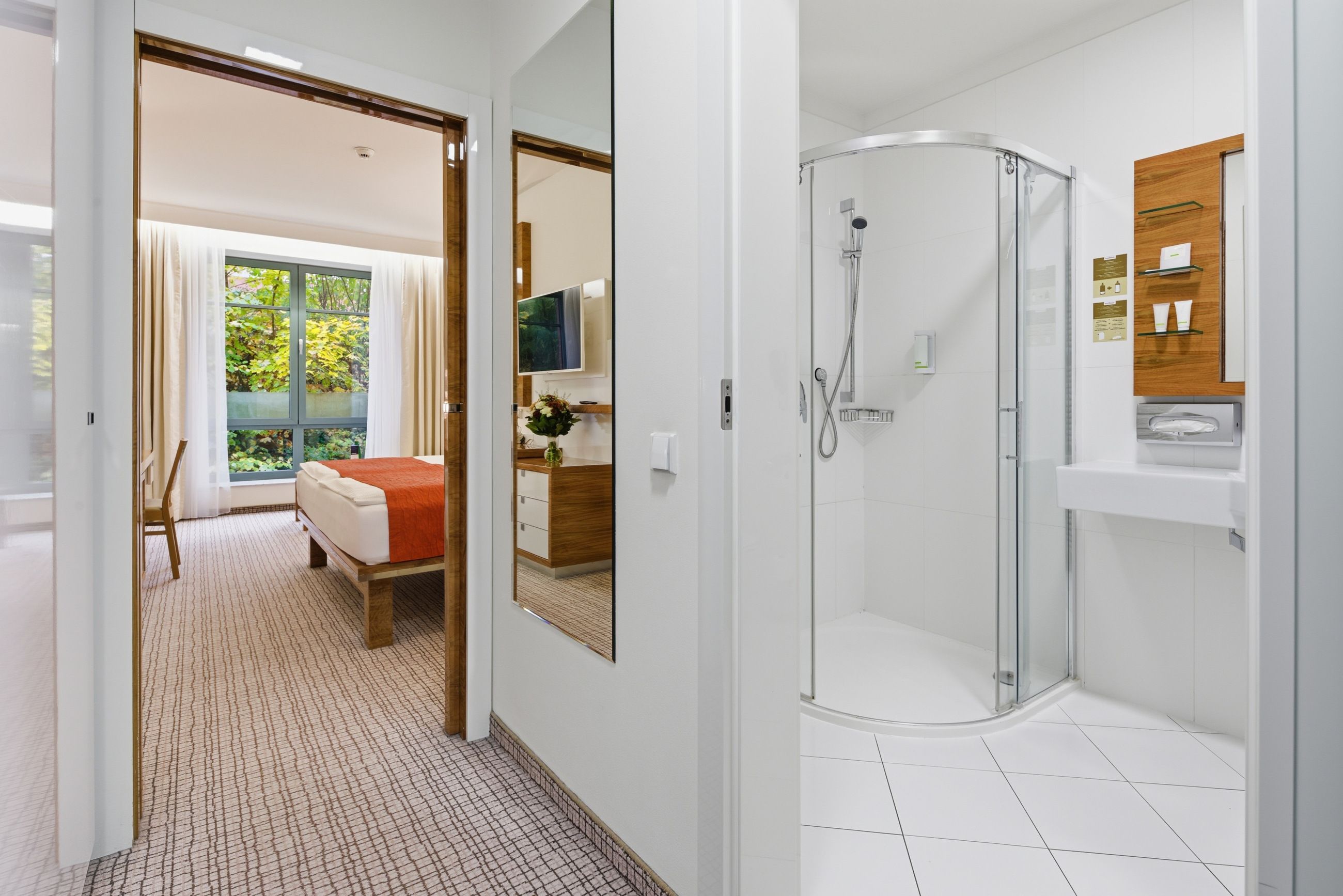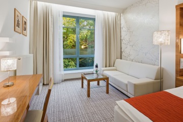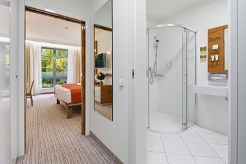 Das Classic Zimmer bietet die ideale Balance zwischen Design und Funktionalität. Für Paare, die einen ruhigen und eleganten Raum zur Regeneration und Entspannung suchen, ist es eine Wahl, die perfekt zum Stil unseres Hotels passt. Die Lage zur ruhigen Seite garantiert zudem ungestörte Erholung nach den Anwendungen. In einigen Zimmern besteht außerdem die Möglichkeit getrennter Betten.